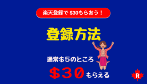 - 赤いボタン:「楽天登録で$30もらおう!」をタップする